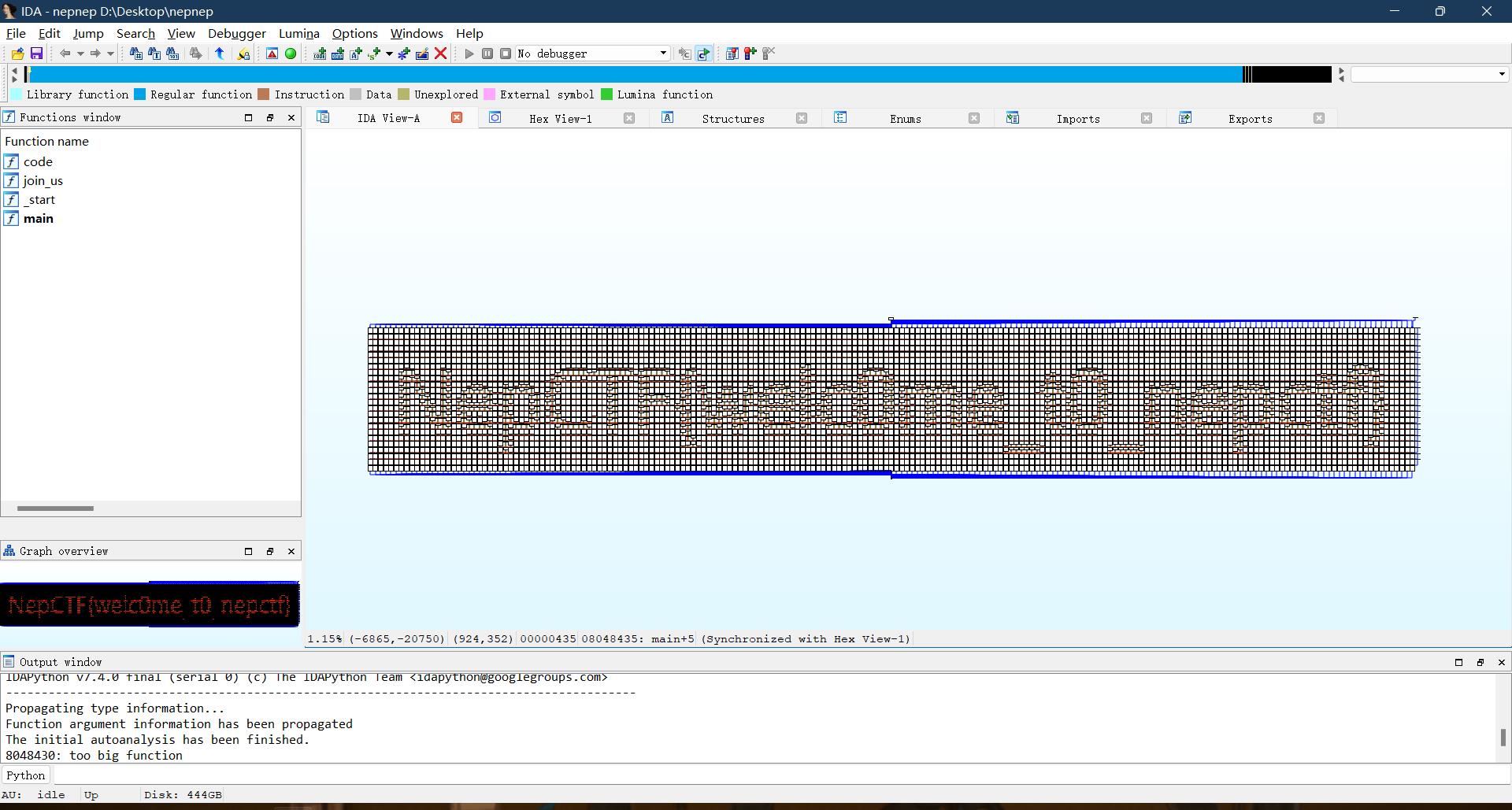 打开 ida 之后报错,提示 The graph is too big,我们在 general 里面把 Max number of nodes 改成 999999 就就可以看到了